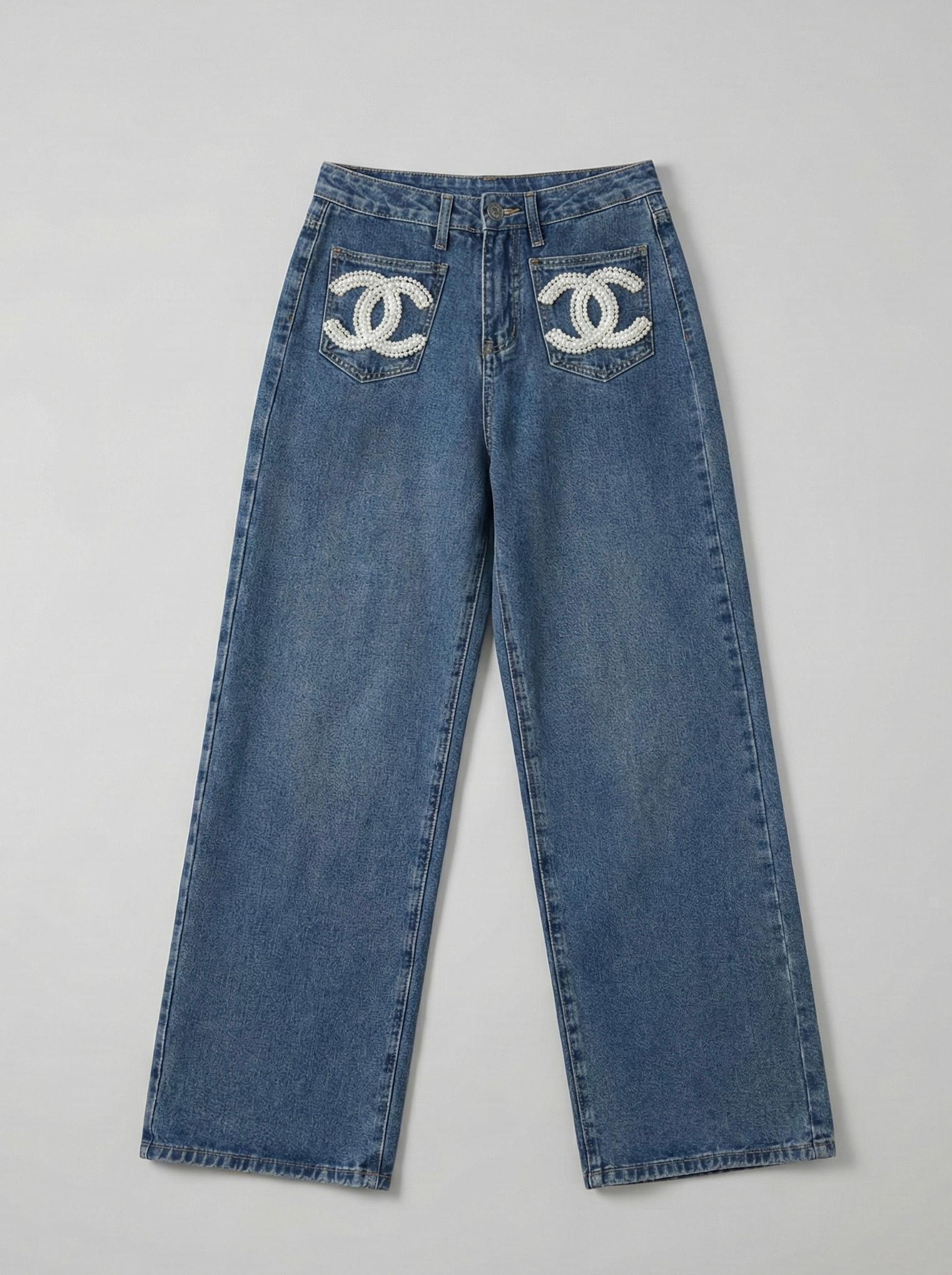 Chanel Wide-Leg Jeans with CC Logo Front Pockets quantity