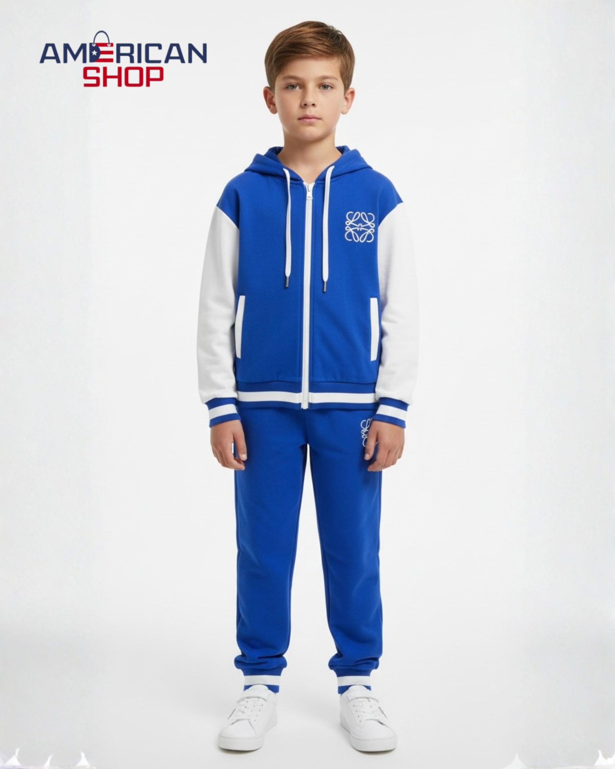 Loewe Kids’ Anagram Logo Zip-Up Hoodie & Sweatpants Set – Royal Blue