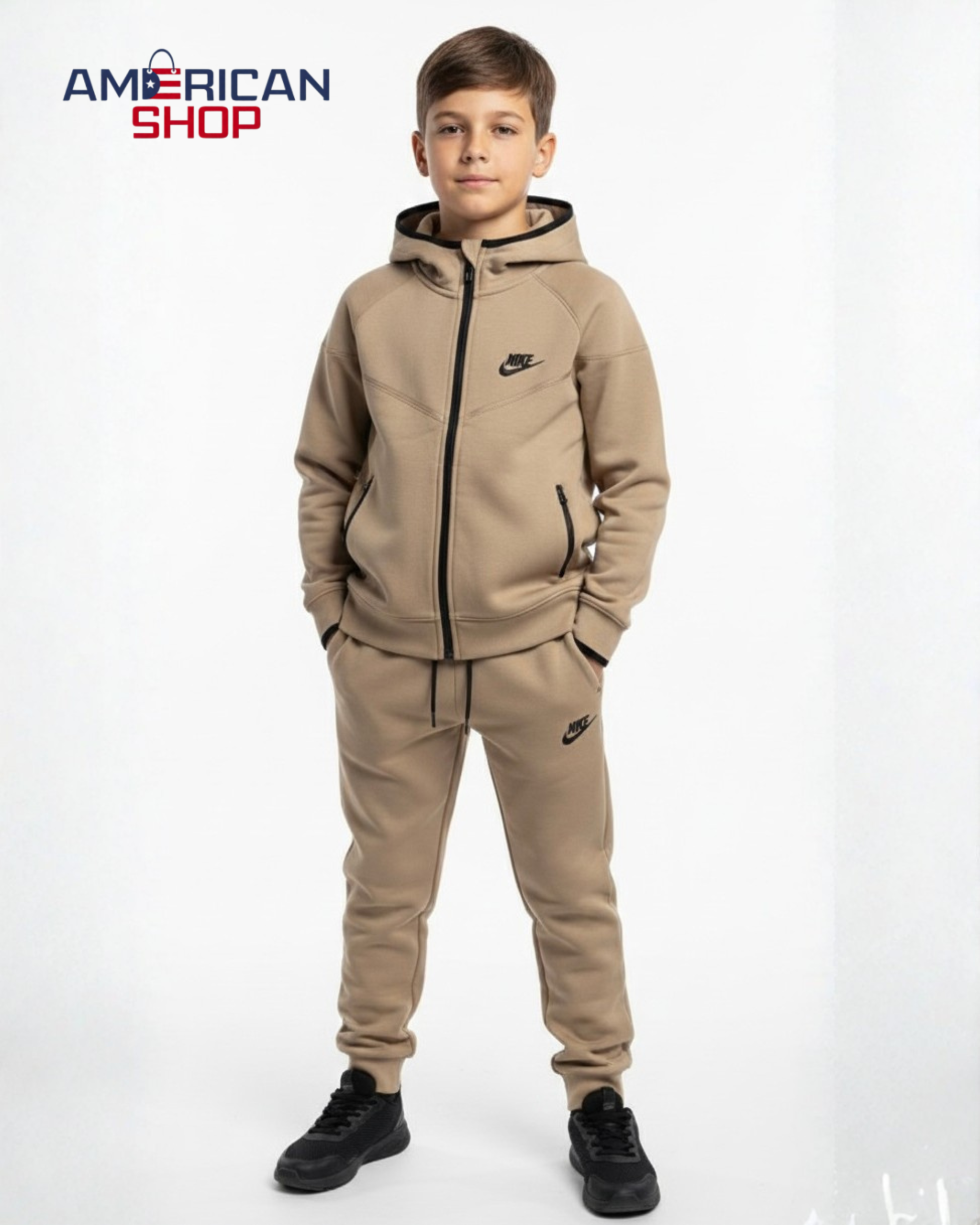 Nike Kids’ Tech Fleece Full-Zip Hoodie & Joggers Set – Khaki/Beige