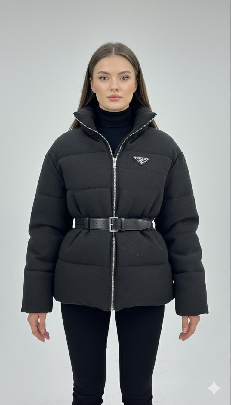 Prada Re-Nylon Down Jacket with Belt